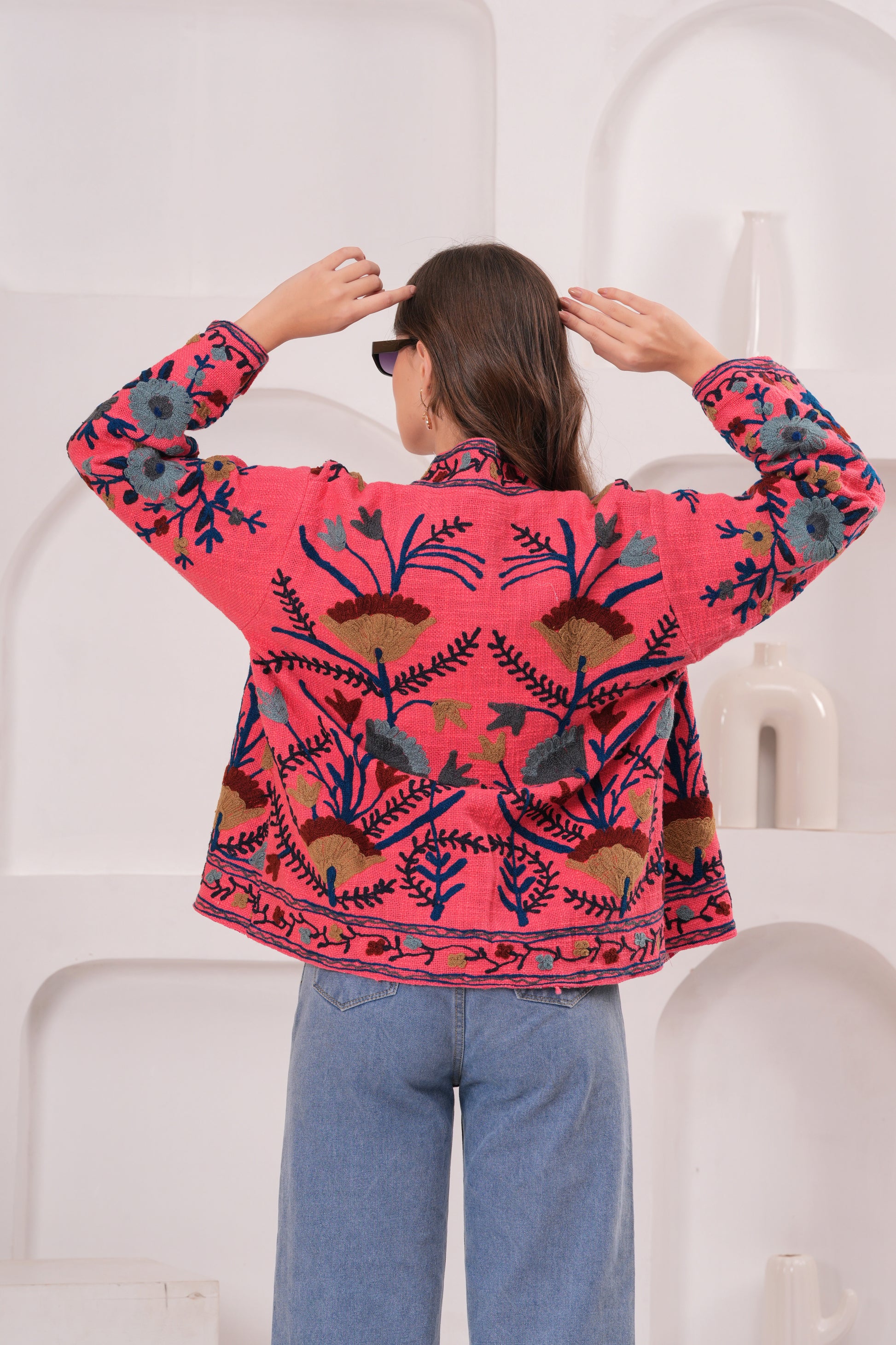 Discover the artistry of heritage craftsmanship with our Stitch and Story Jacket, where traditional embroidery techniques meet contemporary style. Each piece is meticulously hand-embroidered by skilled artisans using time-honored stitches—running stitch, chain stitch, and more—combined with motifs rooted in cultural heritage. The result is a wearable work of art featuring authentic variations and subtle uniqueness that ensures no two jackets are identical. Celebrate the intersection of tradition and individuality with a garment that honors ancestral techniques while making a distinctive personal statement.